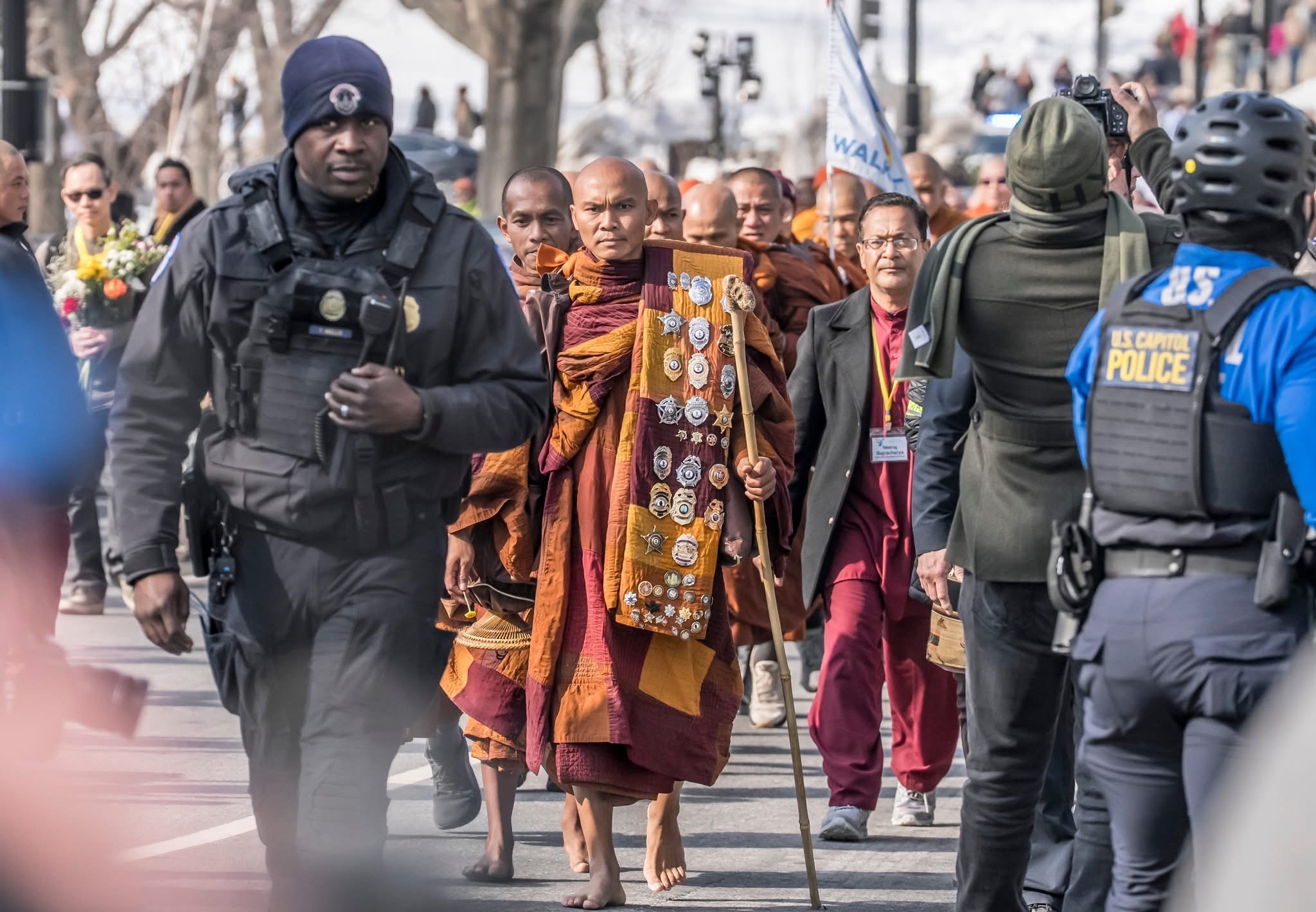 आजको यो पदयात्राको लागि धेरै नै अरु नयाँ भन्तेहरू थपिन आएका थिए भिक्षु पञ्ञाकाराको नेतृत्वमा रहेको यो शान्ति पदयात्रामा भाग लिनको लागि शुरुमा १९ जना भिक्षुहरू अमेरिका, थाइल्याण्ड, भियतनाम, लाओस, म्यानमार, फ्रान्सबाट आउनु भएको थियो यो शान्ति पदयात्रा कार्यक्रमको संयोजन डा. नीरज बज्राचार्यले गर्नु भएको थियो यो शान्ति पैदल यात्राको लागि चाहिने सम्पूर्ण तयारीपछि अक्टोबर २६, २०२५ मा फोर्टवर्थको ह्युङ डाओ विपस्सना भावना सेन्टरबाट यात्रा सुरु भयो टेक्सासको राजधानी अस्टिन भएर लुजियाना, मिसिसिप्पी, अलाबामा, जर्जिया, साउथ क्यारोलिना, नर्थ क्यारोलिना, भर्जिनिया, मेरिल्याण्ड हुँदै अमेरिकाको राजधानी वाशिंगटन डिसीमा शान्ति पैदल यात्रा समाप्त गरियो भन्तेहरूको यो पदयात्राको सुरुमा विस्तारै एक जना दुईजना गर्दै मानिसहरूले बुझ्न आए, सहमति जनाए, अनि यो पदयात्रालाई स्वीकार गर्ने सहमति जनाउदै बाटोमा आउनेहरू हजारौँ पुगे हजारौं भन्तेहरूसँगै हिंडे प्रहरी विभागहरू, चर्चहरू, मन्दिरहरू परिवारहरूले भन्तेहरूलाई स्वागत गरे धेरै सहरहरूले शान्ति पदयात्राको घोषणापत्र कृतज्ञतापत्रहरू पनि दिए अपरिचितहरू समर्थक बने पर्यवेक्षकहरू सहभागी बने एकपछि अर्को पाइला चाल्दै, खाली खुट्टा स्थिर हुँदै, भन्तेहरूले राज्य रेखा, शहर, राजमार्ग, हिउँ, हावा वर्षा पार गरे वासिङ्टन डिसीसम्म पुग्दा यो शान्ति पदयात्राले विश्वब्यापी प्रचार पाइसकेको थियो भने यो समारोहमा भाग लिन आउनेहरू लाखौमा पुग्यो लाखौंले अनलाइन हेरे धेरै मिडियामा समाचार कभरेज भैसकेको थियो सबैजसो सोसियल मिडियाले घर घरमा शान्ति पदयात्राबारे सूचना पु¥याइसकेको थियो त्यसैले अहिलेसम्ममा धेरै ठाँउबाट भन्तेहरू यो पदयात्रामा थोरै भएपनि जोडिन आउनु भयो वासिङटन नेशनल क्याथेड्रलको इन्टरफैथ सेरेमोनीमा शान्ति सभा अन्तरधार्मिक समारोह थियो त्यहाँको अन्तरधार्मिक कार्यक्रमले शान्ति, सद्भाव करुणाप्रति साझा समर्पणमा हजारौं विविध सहभागीहरू धार्मिक नेताहरूलाई एकसाथ भेला गर्यो
