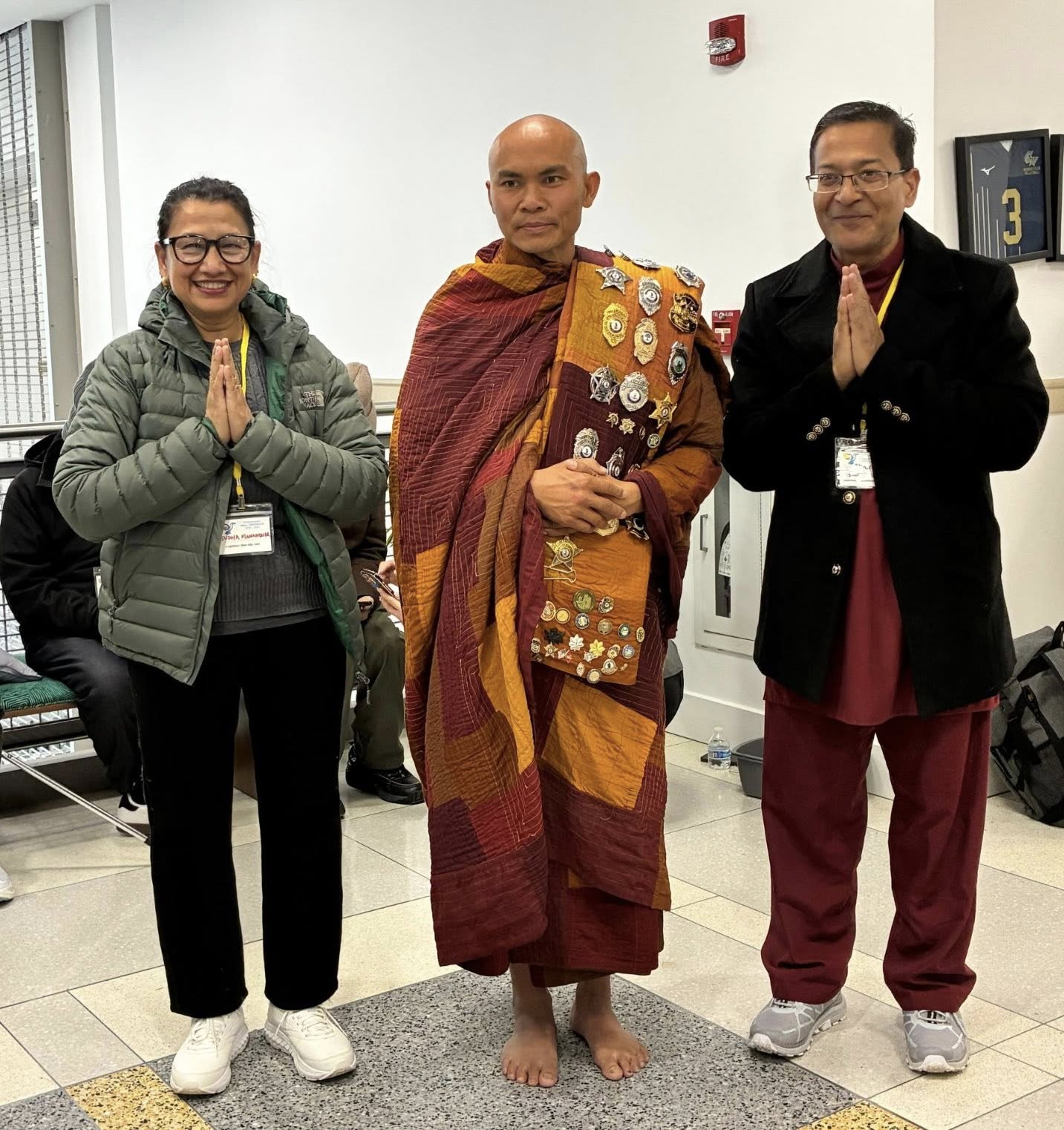 भन्ते पञ्ञाकाराले मलाई टाढैबाट देख्नुभयो, देखेर मुस्काउनु भयो लाग्छ, मलाई देखेर खुसी जनाउनु भयो टाढैदेखि आशिर्वाद दिनु भयो मैले खादा चढाएँ, उहाँले लिनु भयो कुरा पदयात्राको १०८ औं दिनको हो, त्यस बिहान अमेरिकन युनिभर्सिटीमा भन्तेहरूसँग विद्यार्थी शिक्षकहरूको अन्तरक्रिया कार्यक्रम थियो भन्तेहरू त्यस बिहानको अन्तरक्रिया कार्यक्रम सिध्याएर चर्चमा भोजनको लागि आउँदा भन्तेहरूलाई हेर्न बाटोको दुवै छेउमा हजारौँ जनमानस प्रतीक्षा गरिरहेका थिए । म, रोजी नोरीन बिहानै नेशनल मेथोडिस्ट चर्चमा पुग्यौं कृष्णलाई त्यहीं भेटें हामी पनि चर्च पुग्ने ¥याङ्गमा अघिल्लो पङ्तिमा स्वागतका लागि खादा लिएर कुरिरहेका थियौं